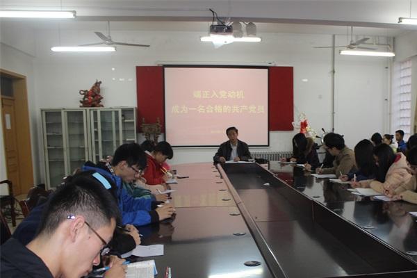 为了更好的建设和发展党员队伍,提高党员政治思想觉悟,11月12日下午,食品学院党委书记史岩针对食品学院全体学生党员、预备党员和入党积极分子,进行了“端正入党动机,成为一名合格的共产党员”专题报告。食品学院党委副书记王乾以及学院学工办辅导员孙晓东、徐浩同时与会。