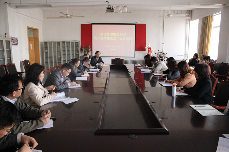3月28日上午,食品学院于207会议室举行全体教职工会议,学习传达校2014年党风廉政建设工作会议精神。会议由王宝维院长主持。
