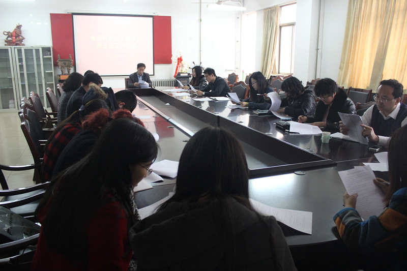 会上,王乾首先向班主任介绍了学院本学期学生工作要点,包括各项思想政治教育主题活动、学生思想动态调研、综合素质测评、贫困生调整、各项科技文化艺术体育类活动等,通报了学院上学期“星级宿舍”评选结果、班级工作积分排名、班级成绩、课堂出勤率等学生工作情况及相关科目考试工作要求。随后,王乾带领全体班主任学习了新修订的《食品学院班级工作考核办法》,就本次学期考核的原则、方式、程序做了详细讲解,要求班主任认真总结班级上学期工作,做好班级考核及学生干部的考核,并重点做好本学期班级安全稳定、学风建设工作,配合学院开展好相关活动。