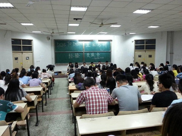 为了进一步提高食品学院11级学生的考研热情,明确考研目标,掌握相关考研技巧,了解更多考研信息,6月7日下午17:00由食品学院学术部主办的考研经验交流会在教学区D201举行。本次交流会诚邀在14年考研中成绩优异、经验丰富的孙玉霞、石念荣、唐晓堰、徐姣、李莹、张佳鹏、戴超等同学,为同学们分享考研经验,为考研的学妹学弟们加油助威。本次交流会由学术部杜雨同学主持。