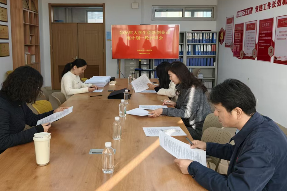 为深入贯彻落实“十五五”时期国家加快高水平科技自立自强、引领发展新质生产力战略部署,全面提升食品学科创新人才培养质量与大学生创新创业训练计划项目培育水平,3月12日,学院在食品楼303顺利开展大学生创新训练计划项目评审工作。评审会邀请学院副院长肖军霞教授、代蕾教授、吴昊教授、杨永新教授、侯秀丹副教授,担任评审专家。