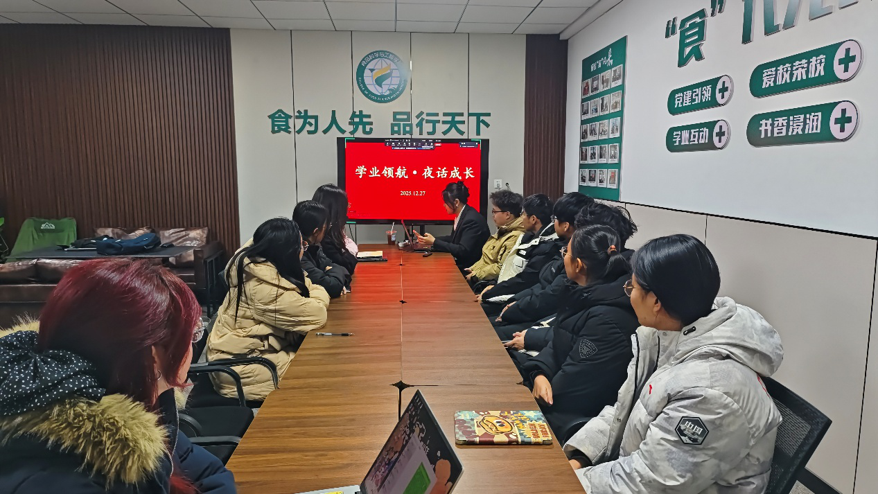 为助力同学们高效备战期末考试、缓解备考压力,12月27日,食品科学与工程学院在城阳校区西苑“一站式”学生社区举办了“学业领航·夜话成长”学业帮扶夜谈活动。优秀学生代表食安2302班毕瑞宵、食科创新2401班司棱淇与食安创新2401班林霖,围绕复习策略与心态调整分享经验、答疑解惑。平度校区同学通过线上方式同步参与。