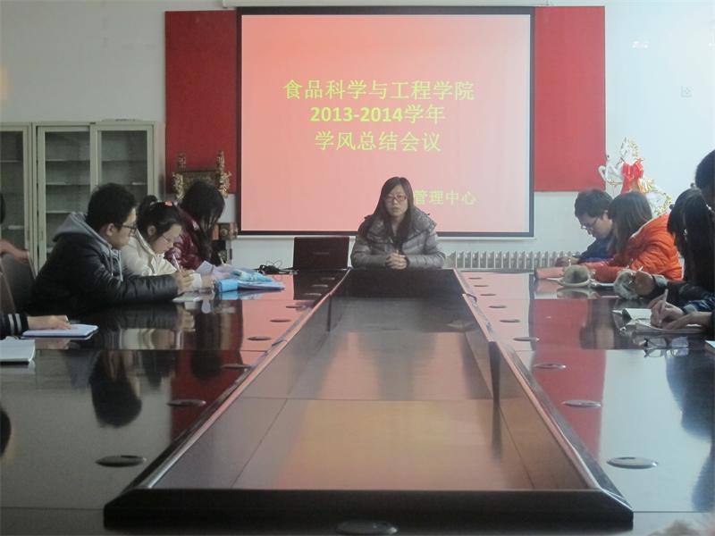 12月27日,食品学院2013年学风总结大会在化学楼207召开,会议由食品学院辅导员孙晓东老师主持,学生会学风管理中心学生干部参加了此次会议。