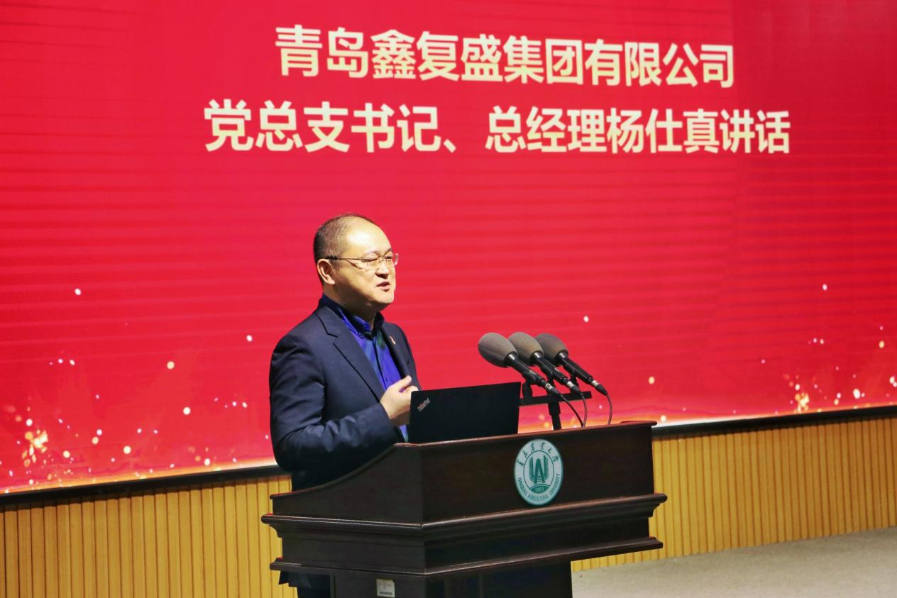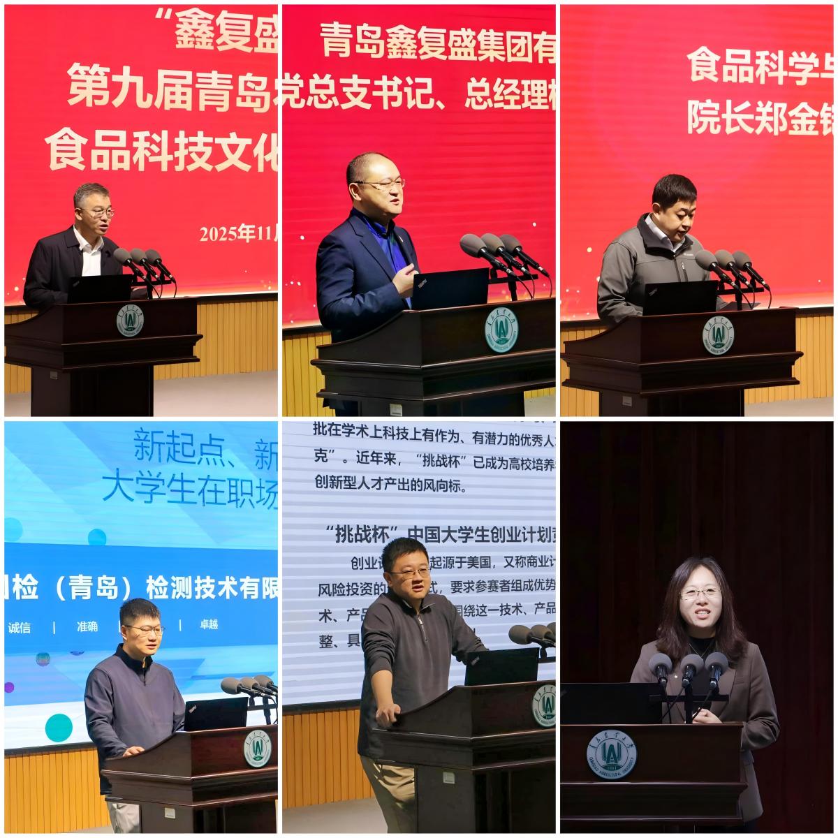 学院合作企业代表、鑫复盛集团党总支书记兼总经理杨仕真致辞,期待与学院在人才培养、技术研发与成果转化等领域拓展合作,通过共建研发平台、共享实验资源、共育专业人才等举措,着力构建产学研用紧密结合的创新体系,为服务地区食品产业高质量发展注入新动能。