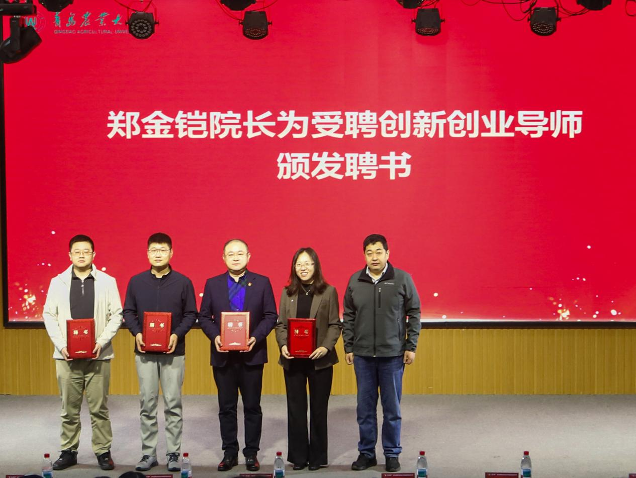 开幕式上举行食品学院创新创业导师聘任仪式,学院院长郑金铠为杨仕真、傅鹏、张婵、杨奉儒颁发了创新创业导师聘书。