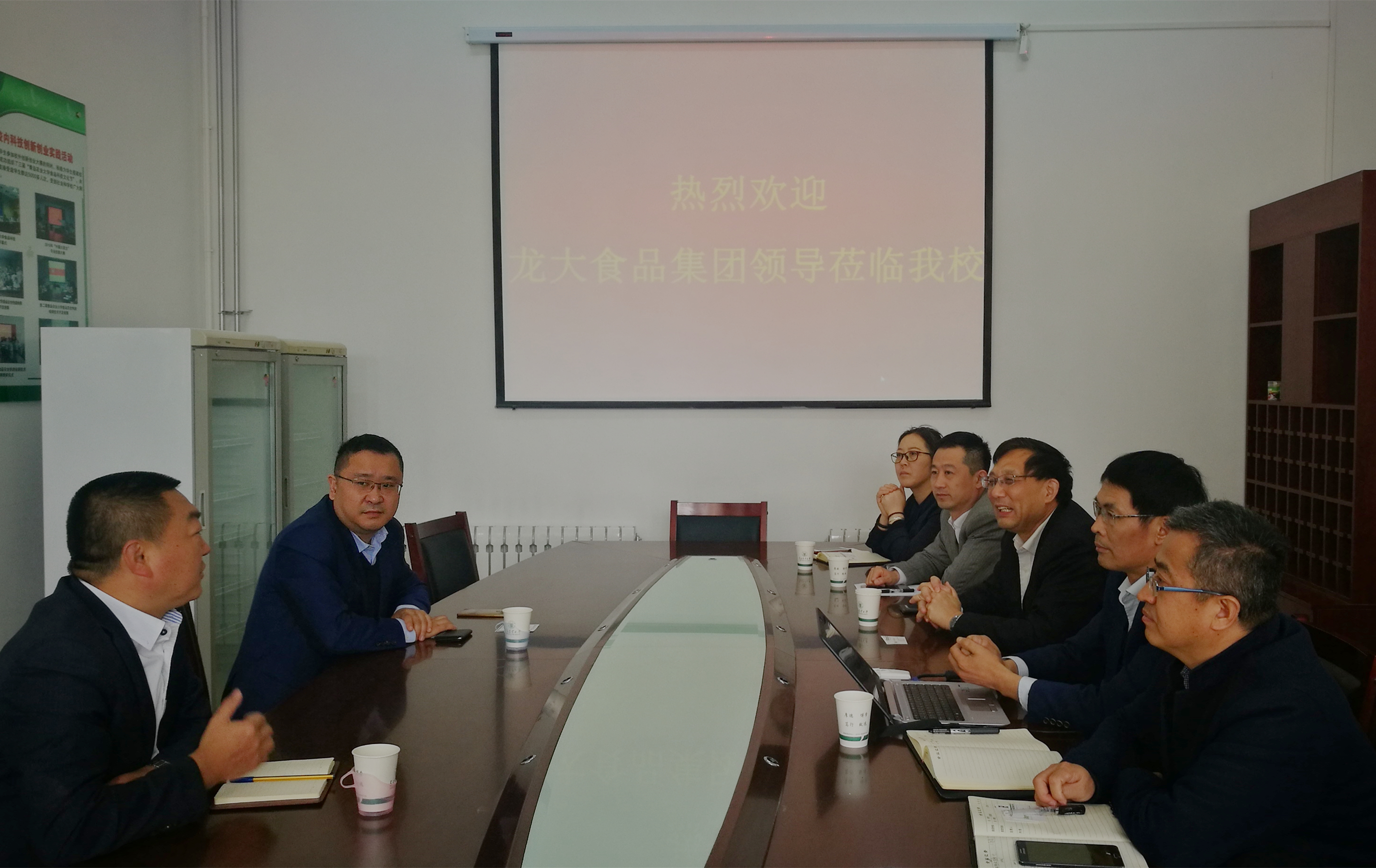 4月4日上午,龙大食品集团有限公司总经理张德润、副总经理宫俊杰一行来到青岛农业大学食品科学与工程学院进行访问。食品学院院长王宝维,党委书记何忠诚,党委副书记宋伟,副院长孙庆杰、陈海华出席洽谈会。