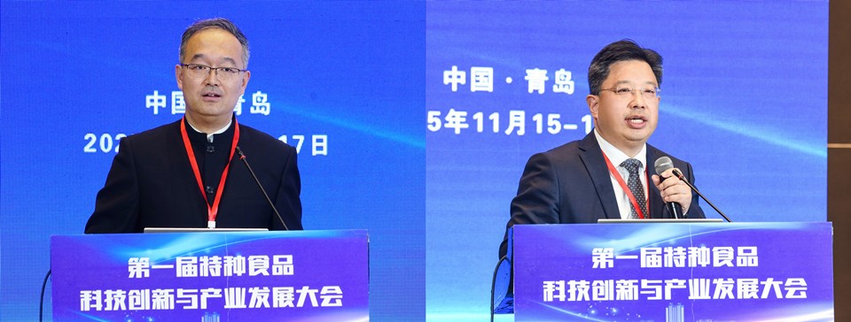 11月16日,由青岛农业大学主办,我院联合江南大学食品学院、中国海洋大学食品科学与工程学院、北京工商大学食品与健康学院、青岛特种食品研究院、青岛海洋食品营养与健康创新研究院等单位共同承办的“第一届特种食品科技创新与产业发展大会”在青岛顺利开幕。大会以“融合创新・科技赋能・产业提质”为主题,汇聚了食品领域的多位院士、知名专家学者、政府领导及企业代表,共谋特种食品产业高质量发展新路径。开幕式由我校党委副书记、校长赵金山主持。
