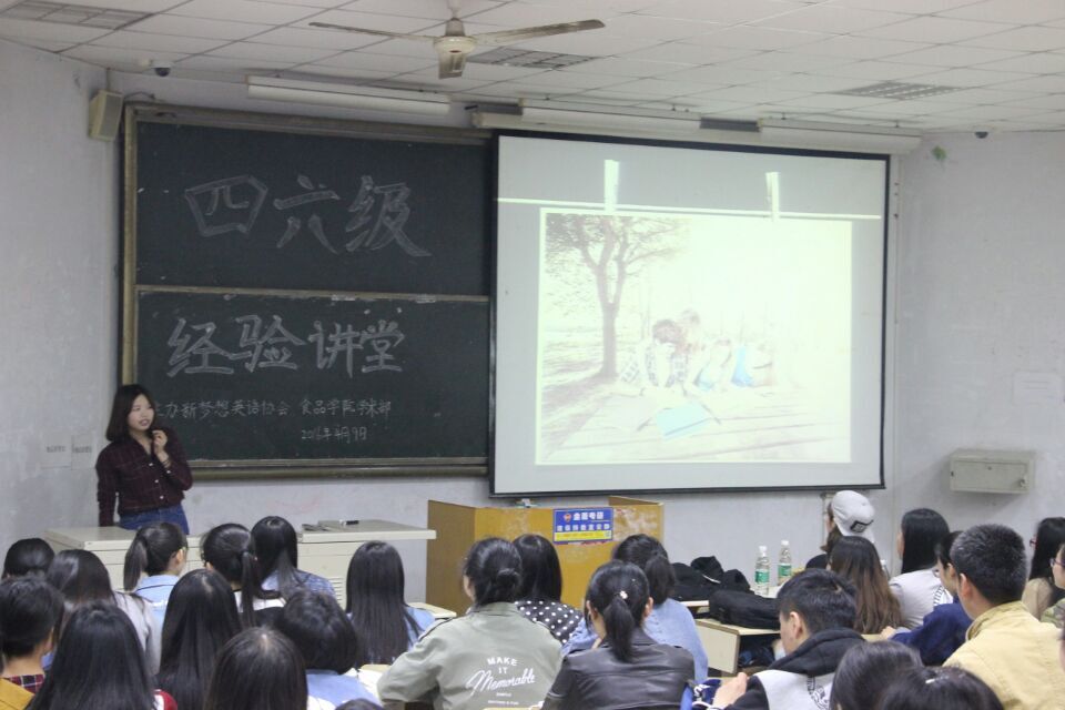 4月9日晚,食品学院学术部与新梦想英语协会联合举办了英语四六级经验交流会。会上,新梦想英语协会会长、校音维电台播音员王国香和新梦想英语协会副会长、韩国交换生黄娟分别就自己的英语学习经历向在场同学讲述了英语四六级考试的一些备考方法、应试技巧等。其中,黄娟还向同学们推荐了扇贝、百词斩等英语学习软件,强调要在平时多积累,利用好点滴时间。最后,在场同学就其在英语学习方面遇到的问题与两位嘉宾进行了互动问答。
