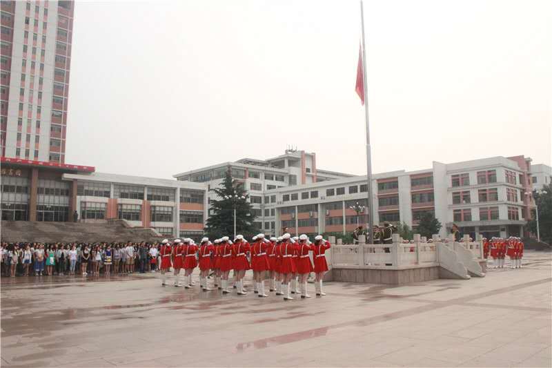 在全体师生的注目礼下,伴随着庄严的《中华人民共和国国歌》,五星红旗冉冉升起,迎风飘扬。在场的每一个人向国旗肃立,深怀对祖国的无限热爱和崇高敬意。