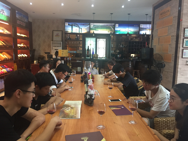 在蓬莱市葡萄酒局宋主任的带领下,队员们来到蓬莱产区葡萄酒展示中心,在展示中心,队员们品鉴了蓬莱产区的精品葡萄酒,在品鉴期间,队员们相互交流品鉴后的感受,并盲品了许多葡萄酒的品种。品鉴结束之后,队员们对蓬莱产区的葡萄酒风格有了一个初步的了解和认识。