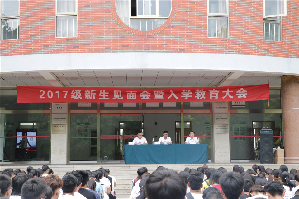 9月4日,食品科学与工程学院在化学楼前举行2017级新生见面会暨入学教育大会。会上,学院党政领导、学工办成员与新生见面,院长王宝维、院党委书记何忠诚分别为全体新生作报告。 王宝维代表学院全体师生向2017级新同学的到来表示诚挚的祝贺和热烈的欢迎,详细介绍了学院的发展历史、学科优势和师资力量等,并就大学生如何成长成才提出要求。王宝维指出,大学生应提升自身整体素质,全方位发展自己,注重人际交往能力、适应能力、个人整体能力、心理调节能力、独立能力、组织管理能力的培养。对于大学生如何成才,王宝维提出四点建议:一是树立明确目标,做好人生规划;二是保持高昂的奋斗激情,只争朝夕;三是领悟“授之以渔”的学习方法,触类旁通,学会独立多角度思考问题;四是学会独立思考,博学笃行;五是拜师求学,拓展人生空间,充分利用学校里的人才资源,从各种渠道吸收知识和方法;六是把握今天,把握自己。最后,王宝维寄语新生:“生活不是一场彩排,学习中的成绩不是我们的目的地,而是一段旅程。愿同学们在短暂的学习时日里,获得做人的模板、渊博的知识、高超的本领,通过不断的成功和挑战来学习和成长,早日成为祖国的栋梁之才!”