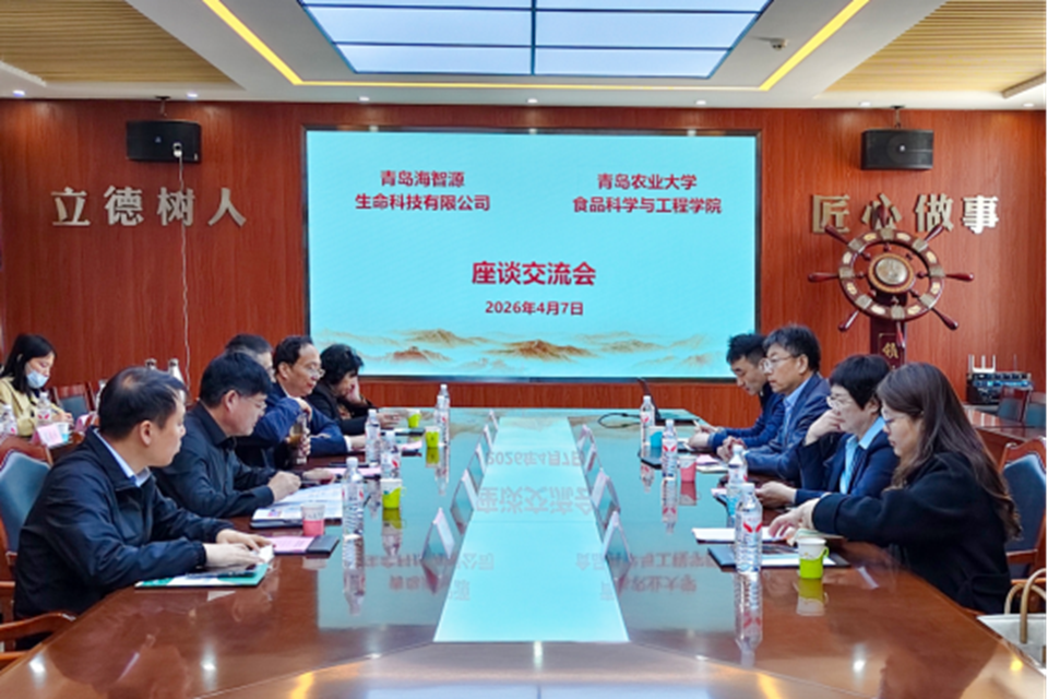 为深化产学研合作,推动校企协同创新,4月7日上午,青岛海智源生命科技有限公司董事长白长军一行来访我校交流座谈。青岛农业大学党委委员、副校长孙庆杰,党委委员、统战部部长赵龙刚出席座谈会,双方围绕专用油脂开发、特殊膳食研制及合成生物学产业化应用等方向进行了深入交流。座谈会由赵龙刚主持。