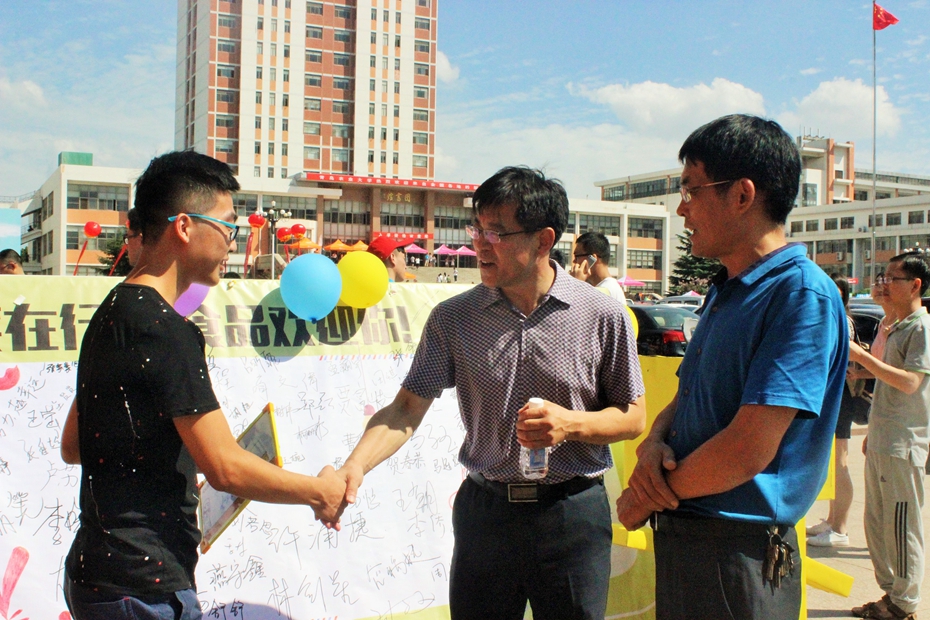 8月27日,2016级新生报到的第一天,食品科学与工程学院迎新工作有序的进行。青岛农业大学校长宋希云、副校长杨同毅莅临学院迎新现场指导工作,慰问工作在现场的老师和学生志愿者。