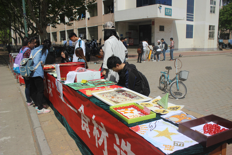 为了迎接“五四”青年节的到来,深入贯彻学习习近平总书记“勤学、修德、明辨、笃实”八字箴言和五四精神,5月4日,食品科学与工程学院在东苑三号楼前举办“志青春,展风采”食材造型展览,并且在食品学院官方微信上发起投票。 此次活动中各团支部利用蔬菜、水果或者豆类等食材为材料,采用拼接、黏贴、雕刻等形式制作体现符合五四精神和“八字箴言”的作品。各团支部积极参与,作品精致美观。有的用玉米及红豆拼出了团旗的造型、有的用创意蛋糕表达青年学生无限的创造力、有的用水果及蔬菜展现社会主义新农村的发展及变化,展览现场吸引了大量师生前来观赏。最终,微信投票结果以质检1301制作的关于八字箴言的作品获得冠军。