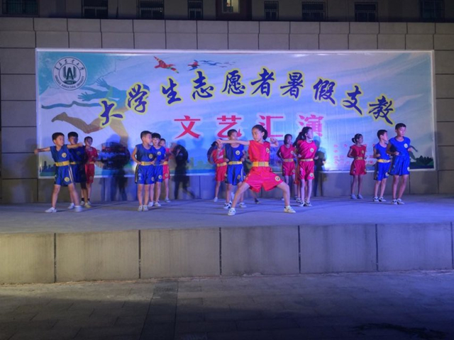 为圆满完成此次支教活动,支教队员和孩子们最后在辛寨镇社区服务中心举行了大学生暑期支教文艺汇演。支教队员和孩子们为辛寨人民带去了一场精彩纷呈的青春盛宴,孩子们多才多艺的表演和支教队员们的良好配合让大家看到了年轻人的活力。