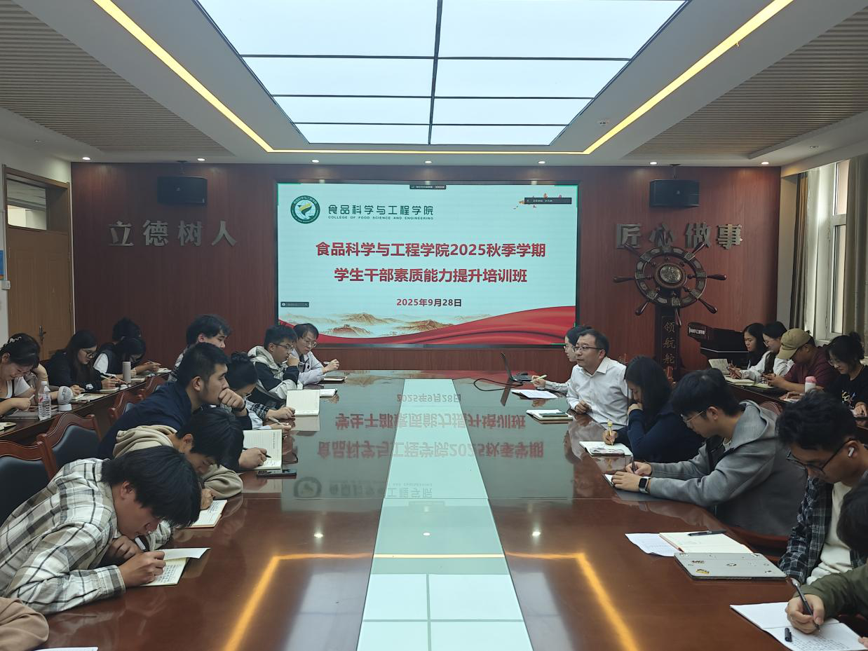 为进一步加强学生干部队伍建设,提高学生干部队伍的思想认识和整体素养,提升服务同学能力和水平,9月28日,食品科学与工程学院举办2025秋季学期学生干部素质能力提升培训班,就党团建设、心理健康教育以及社会实践和志愿服务工作等进行专题辅导。