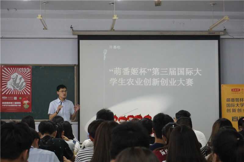 5月23日上午,“萌番姬杯”第三届国际大学生农业创新创业大赛宣讲会在教学区开讲。赛事委员会成员,本次比赛主办方北京医食同源科技有限公司马明博士受邀出席宣讲会并向与会大学生们介绍了大赛相关情况。