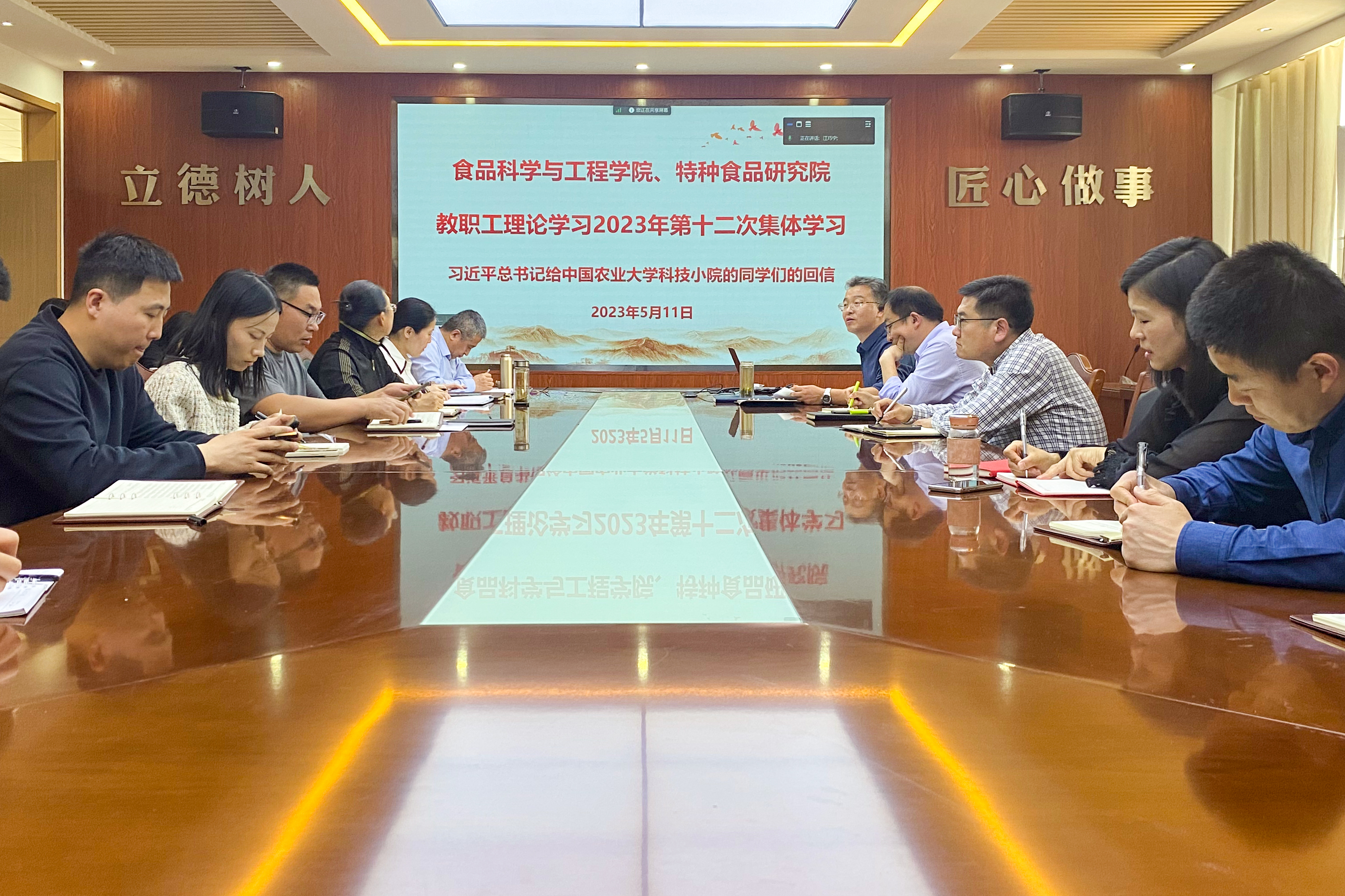 5月11日,食品科学与工程学院、特种食品研究院召开教职工理论学习2023年第十二次集体学习会议,专题学习习近平总书记给中国农业大学科技小院的同学们的回信精神,会议由学院党委书记车广杰主持。