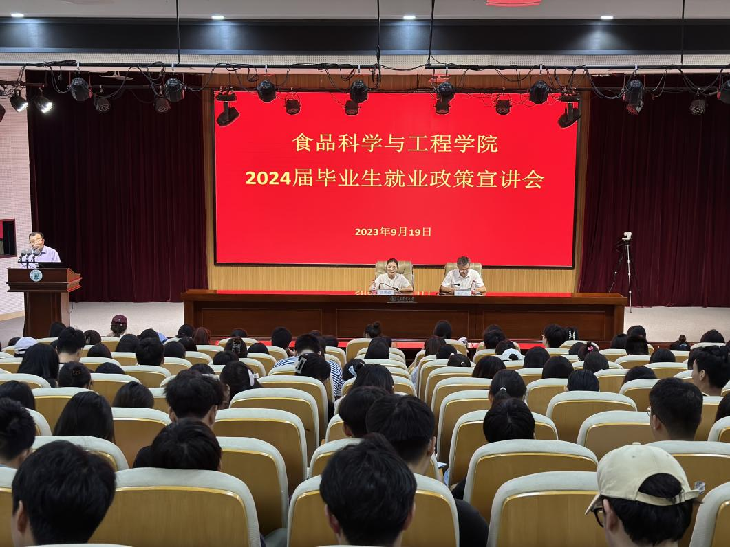 为切实做好2024届毕业生就业工作,帮助毕业生了解最新的就业形势及就业政策,引导毕业生树立正确的择业观和就业观,9月19日,食品科学与工程学院在学术会馆第二报告厅举行2024届毕业生就业政策宣讲会。学院党委书记车广杰、学生处副处长吕国莹、三昌食品副总经理梁爽出席会议。会议由学院党委副书记、副院长刘晓华主持。