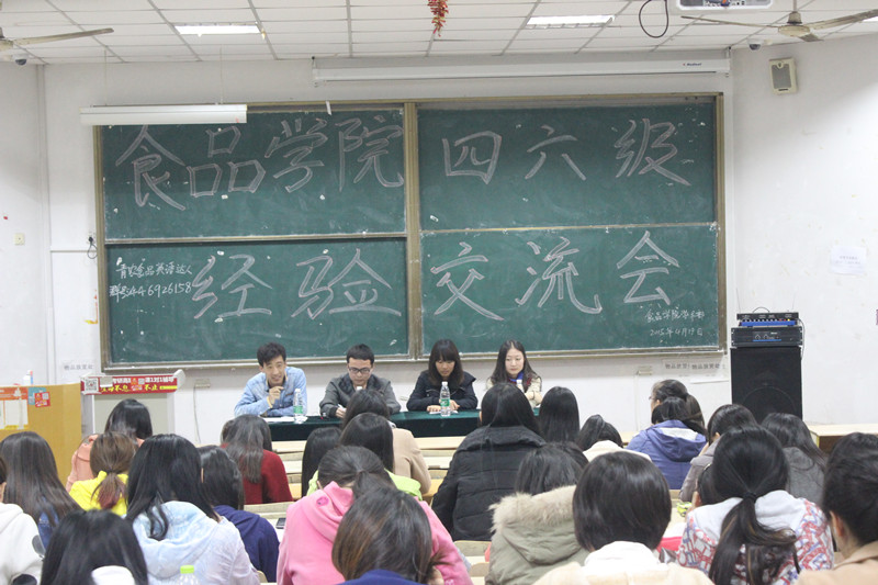 4月18日晚,食品科学与工程学院组织召开“四六级经验交流会”,旨在解决同学们在准备大学英语四六级考试中遇到的问题。本次经验交流会邀请到了四位学院英语达人到场为大家分享经验。
