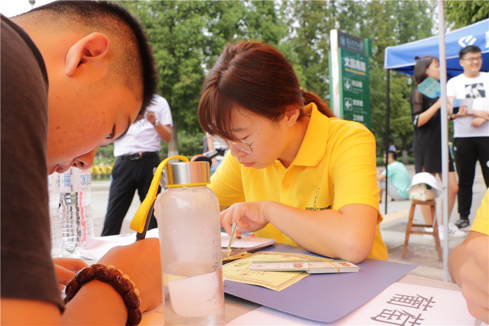 “微笑在行动”是食品学院迎新工作的特色品牌,活动以“全心全意为新生服务”为工作宗旨,做到“文明迎新,热情周到,亲情服务,积极稳妥,优质高效,安全有序”。迎新期间,新生办好入学手续后,由工作人员引导,到签名展板前留下寄语并合影,抽取学院组织高年级学生为新生制作的联系卡片,方便老生日后为新生提供帮助。新生落笔留言“唰唰”、相机留影“咔嚓”声声呼应,迎新现场无论学院领导老师亦或志愿服务人员始终洋溢着热情的微笑。
