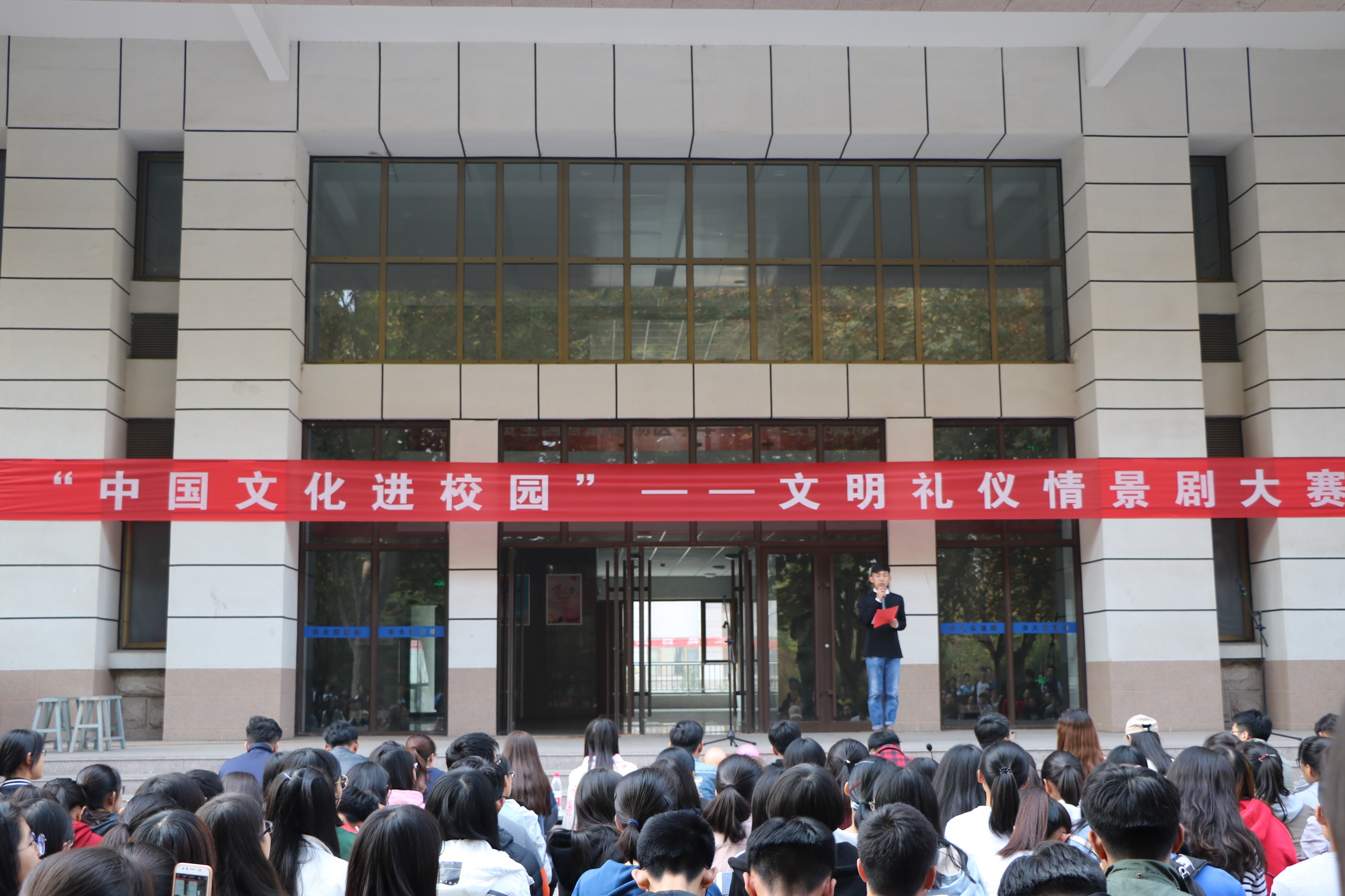 10月28日下午,食品科学与工程学院在科技楼前举办“中华文化进校园”——文明礼仪情景剧大赛。本次大赛共吸引了来自学院2017、2016级学生组成的12支队伍。学校话剧社成员及学院学生会主要学生干部担任大赛评审。