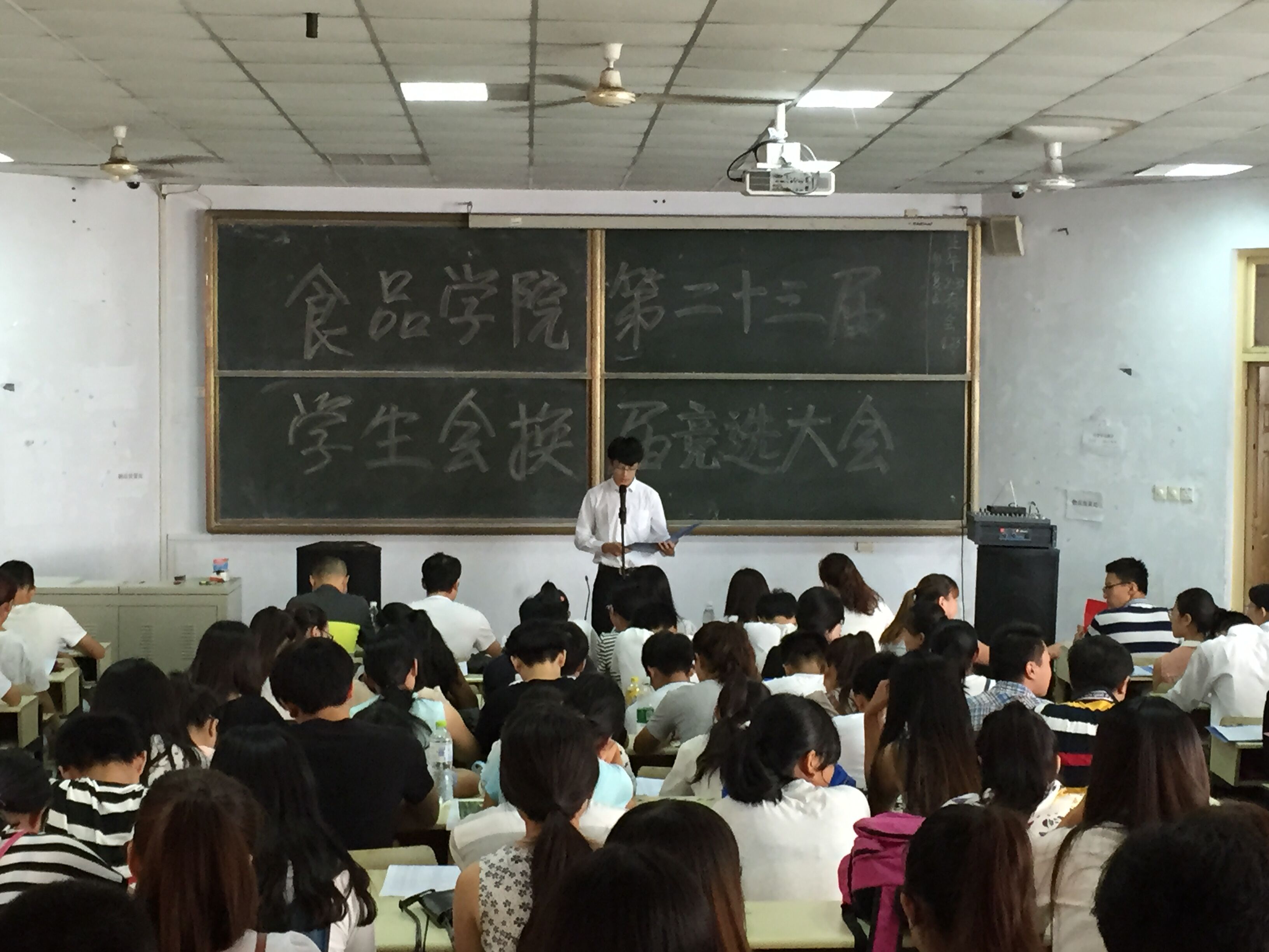 为了更好的服务学生,完善学生管理工作。8月23日上午,食品科学与工程学院第23届学生会换届竞选大会在教学区举行。食品学院党委副书记王乾、团委书记王海霖、学工办辅导员赵莹、孙晓东、徐浩参加大会并担任评委。学生会全体成员及各班学生干部参会。