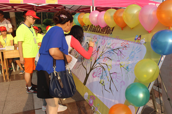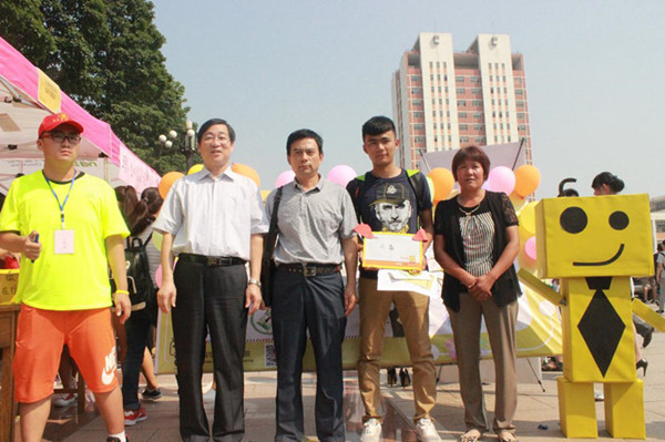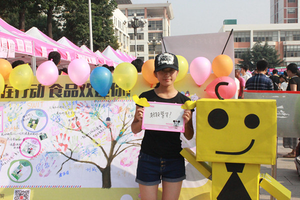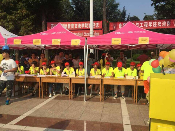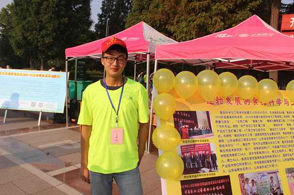 8月29日,青岛农业大学迎接2015级新生活动紧张有序的进行,食品学院在虹子广场搭起黄色海洋,迎接15级学弟、学妹。学院摊位前的特色展板及食品学院吉祥物Swit受到新生的热烈欢迎。