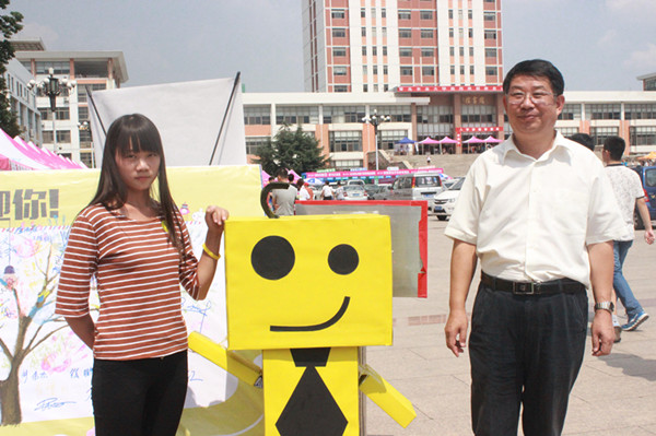 “微笑在行动”特色展板,让新生用笔写下对大学的憧憬