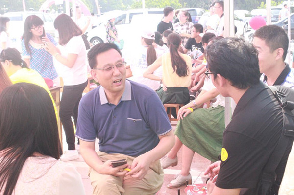 食品学院院长王宝维到迎新现场与工作人员交谈