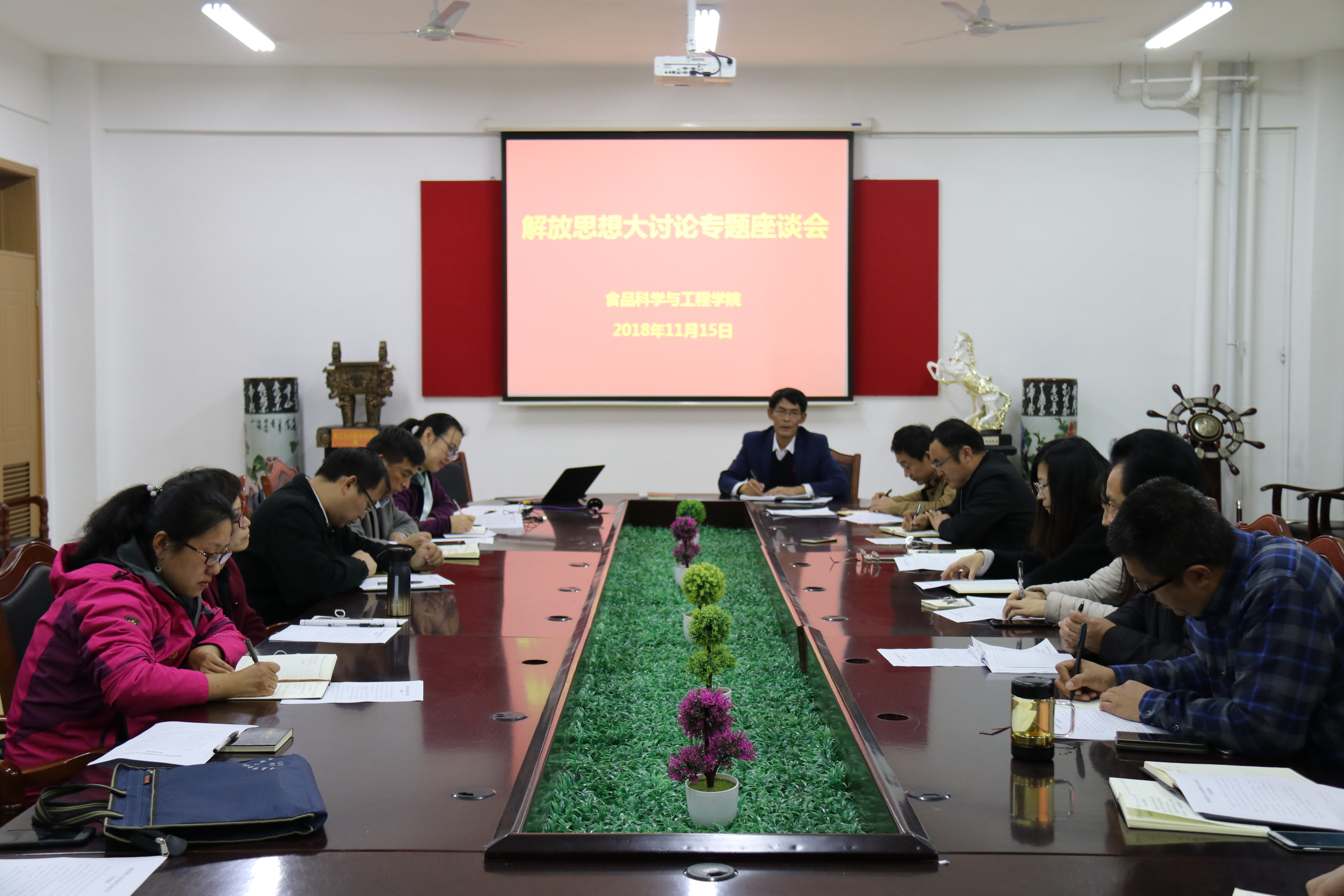 根据学校《关于开展解放思想大讨论活动的通知》和《关于组织开展集中整治形式主义、官僚主义的通知》精神要求,11月15日,食品科学与工程学院召开解放思想大讨论座谈会。学院党政领导班子成员、教授委员会成员、党支部书记、专业负责人、教研室主任参会。会议由学院党委书记何忠诚主持。