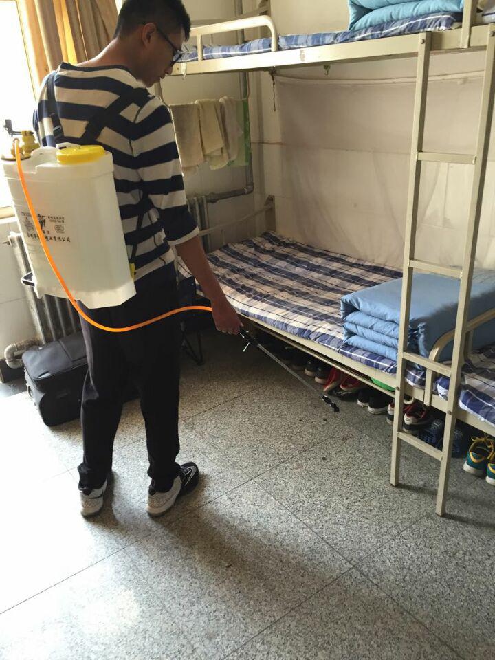 为保证广大同学的身心健康,构建良好宿舍卫生环境,做好传染性疾病传播蔓延的预防工作。2015年4月26日上午,食品学院学生会舍管中心成员深入宿舍进行消毒工作。