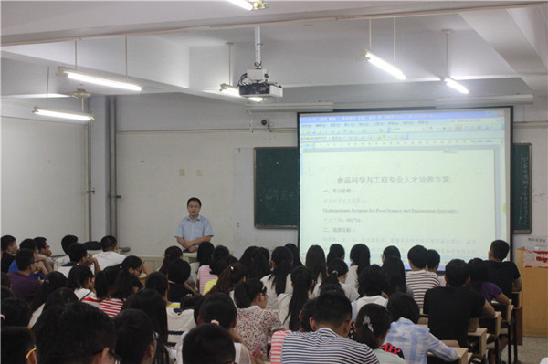 9月1日,食品科学与工程学院各专业负责人在教学区组织开展了专业介绍会,旨在让15级新生对所学专业有更加深入地了解,方便以后各专业学习工作的展开。食品学院15级全体新生参加本次介绍会。
