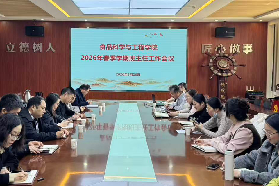 为进一步推动新学期学生工作有序开展,3月20日,食品科学与工程学院召开2026年春季学期班主任工作会议。学院党委书记车广杰出席会议并讲话,全体班主任参会,会议由学院党委副书记、副院长王敬主持。