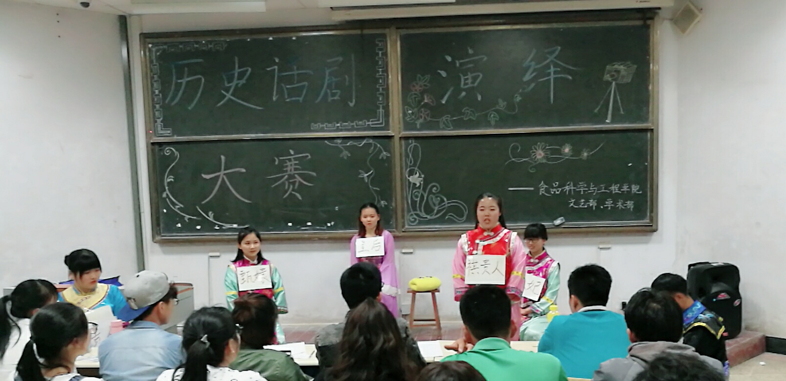5月13日晚,食品科学与工程学院在教学楼举办“以史为鉴,借喻古今”话剧表演大赛。学院15,16级的10组选手参加了比赛。