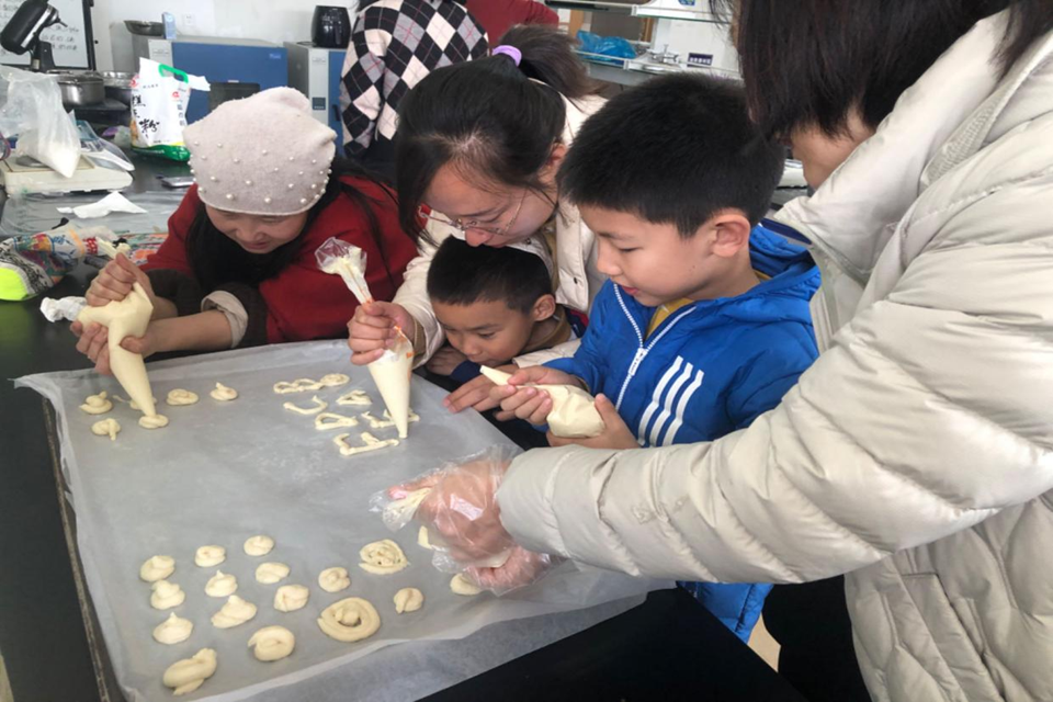 在第116个“三八”国际劳动妇女节来临之际,为表达对全校女教职工的关心与敬意,丰富教职工业余文化生活,营造温馨和谐的校园氛围,由校工会主办、食品学院分工会承办的“巧手生香,‘焙’感幸福”烘焙DIY主题活动近日在食品楼二楼烘焙实验室顺利举行。活动通知一经发布,便得到各分工会积极响应,广大女教职工踊跃报名、热情参与,现场气氛热烈而温馨。校党委副书记田义轲、校工会主席王清春、工会(妇委会)副主席于宁等领导亲临活动现场,与女教职工亲切交流,详细了解活动组织情况,并向大家致以节日的诚挚问候和美好祝福。