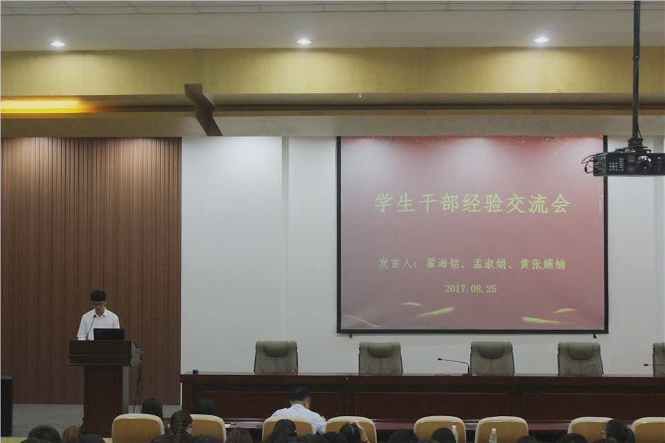学生干部、党员代表翟海铭、孟淑娟、黄张嬿楠分别从如何提升自身素质,如何做好学 生会及班级工作等方面做了交流发言。