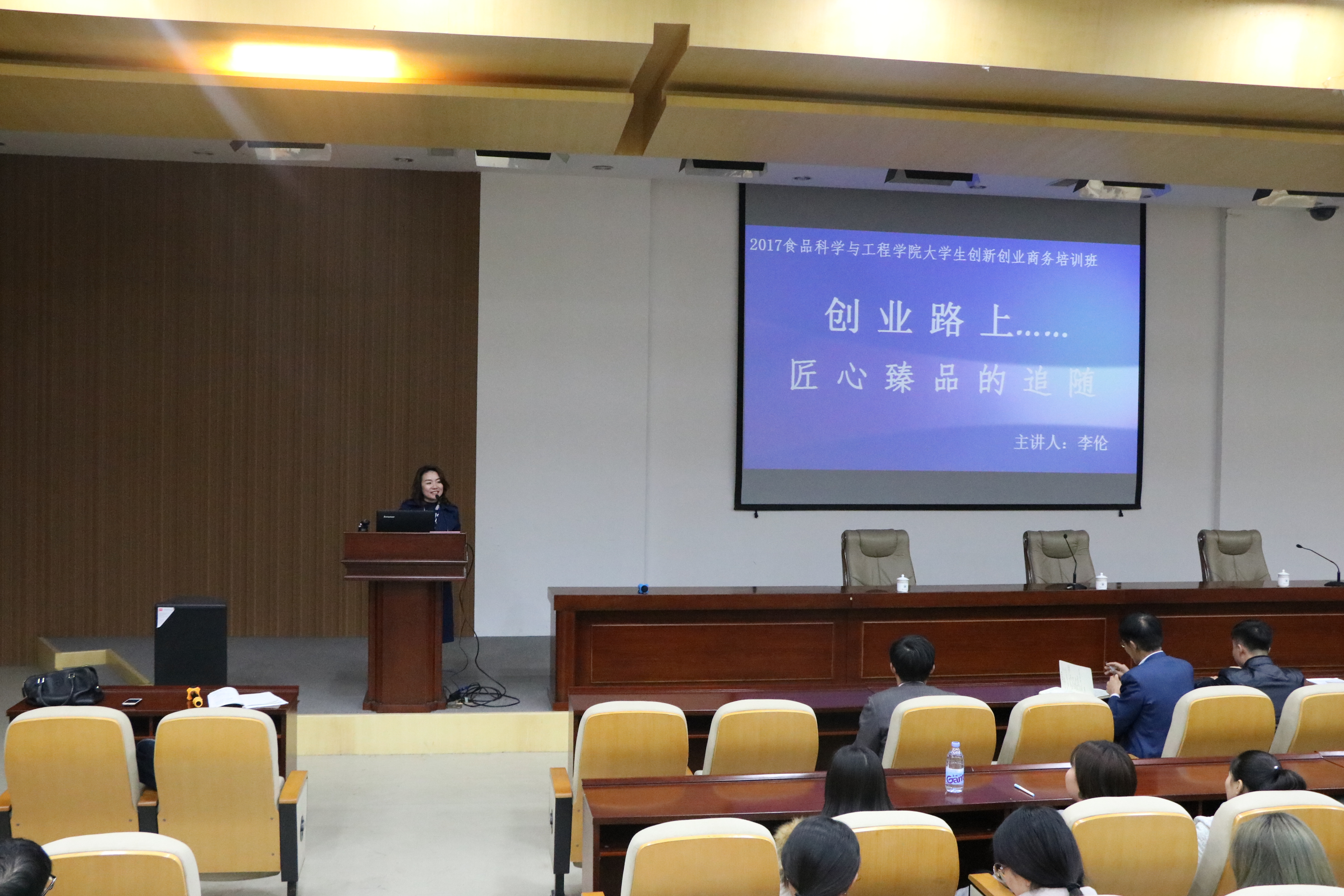 11月11日下午,第二期食品科学与工程学院创新创业商务培训班第三课在学术会馆第二报告厅举行。本次授课特邀学院2003级优秀校友、无锡赞匠工作室创始人李伦为培训班学员作报告。学院党委书记何忠诚、党委副书记宋伟、团委书记李永青出席报告会。