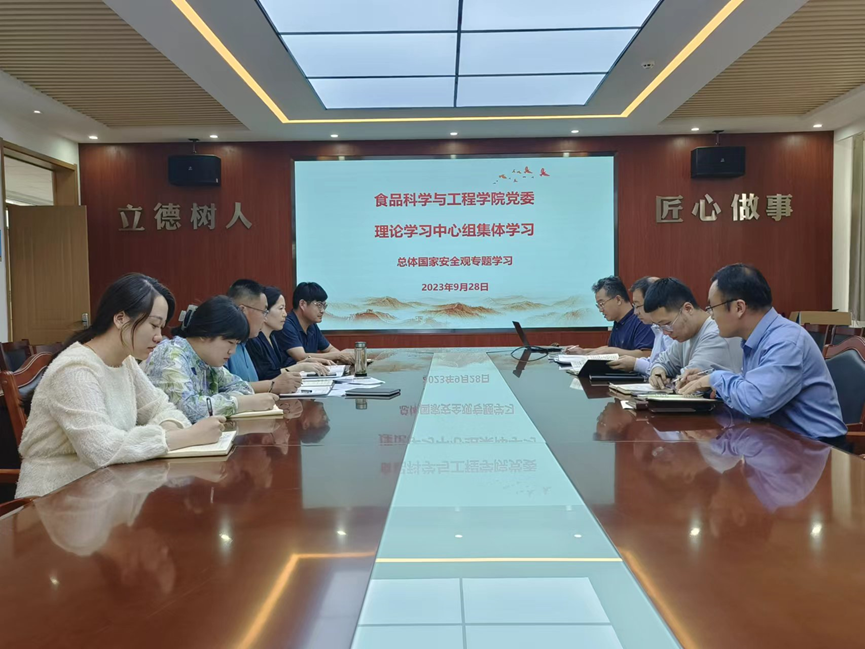 深入学习贯彻习近平总书记关于总体国家安全观、军民融合发展等的指示精神。9月28日,食品科学与工程学院党委理论学习中心组召开集中学习会议,会议由党委书记车广杰主持。