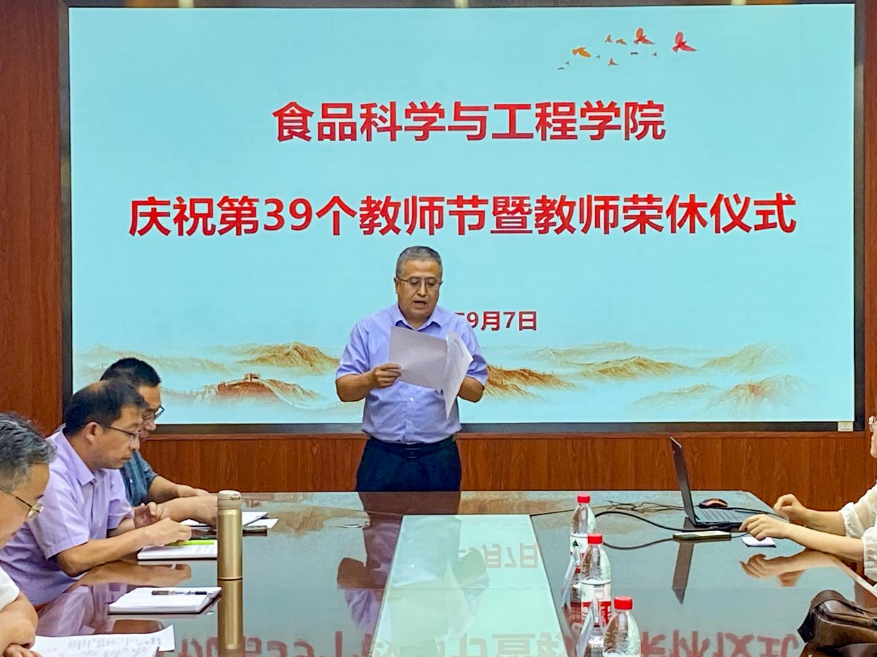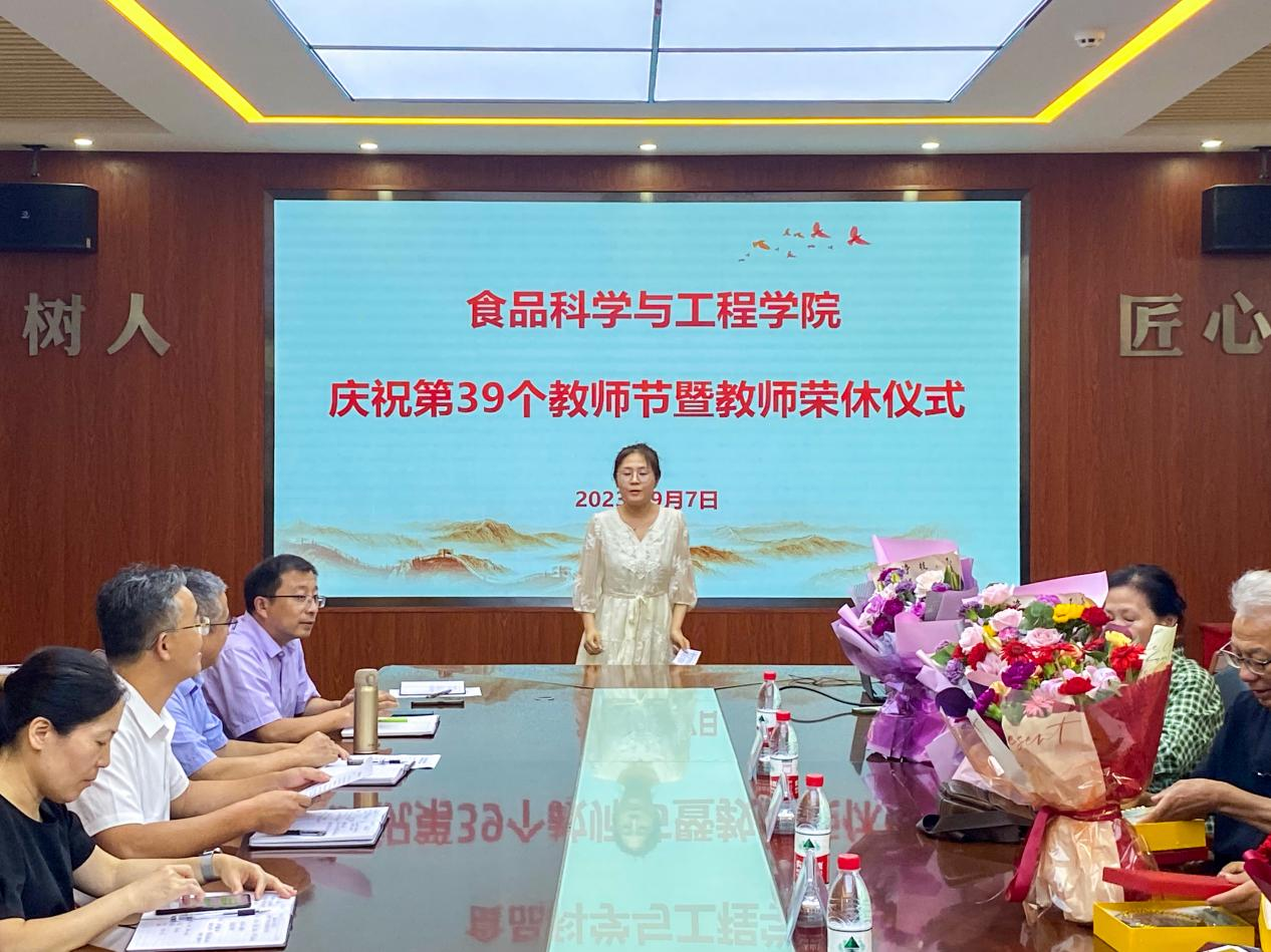 9月7日,在第39个教师节到来之际,食品学院庆祝教师节暨教师荣休仪式在食品楼310会议室举行,学院全体教职工欢聚一堂,共同欢庆自己的节日,同时向光荣退休的六位老教师志送上最诚挚的祝福和最深切的感谢,学院党委书记车广杰主持仪式。