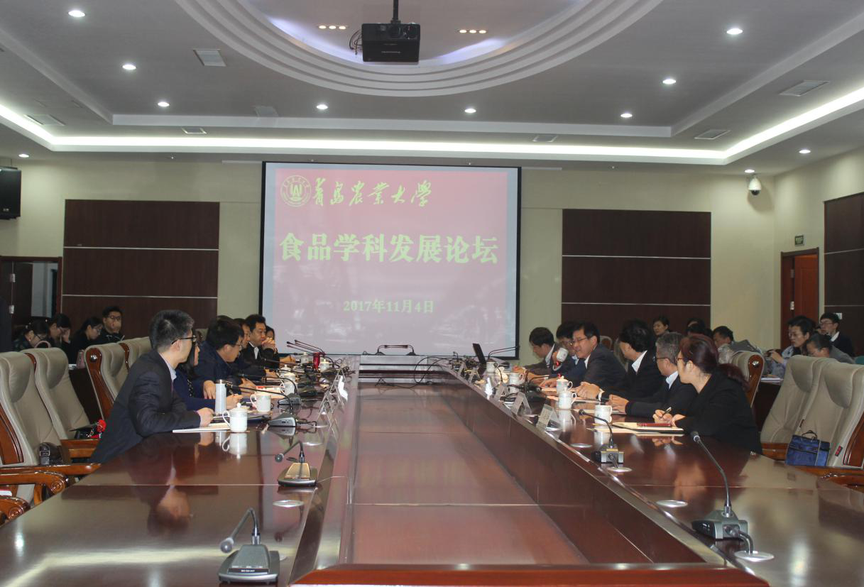 11月4日上午,青岛农业大学食品学科发展论坛在学术会馆会议厅顺利举行。中国农业大学食品科学与营养工程学院罗云波教授,浙江大学生物系统工程与食品科学学院何庆国教授,西北农林科技大学食品科学与工程学院岳田利教授,西南大学食品科学学院院长赵国华教授,四川农业大学食品学院副院长秦文教授,北京农学院食品科学与工程学院仝其根教授,山东农业大学食品科学与工程学院侯汉学副教授,北京医食同源科技有限公司董事长、中国生产力促进中心协会健康食品专业委员会秘书长李佳桐应邀出席论坛。青岛农业大学副校长杨同毅、刘春霞出席论坛。论坛由食品科学与工程学院院长王宝维教授主持。