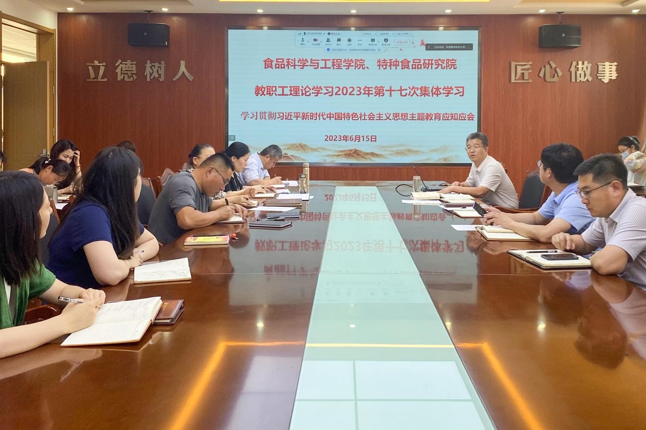 6月15日,食品科学与工程学院、特种食品研究院召开主题教育专题学习会,会议由学院党委书记车广杰主持。