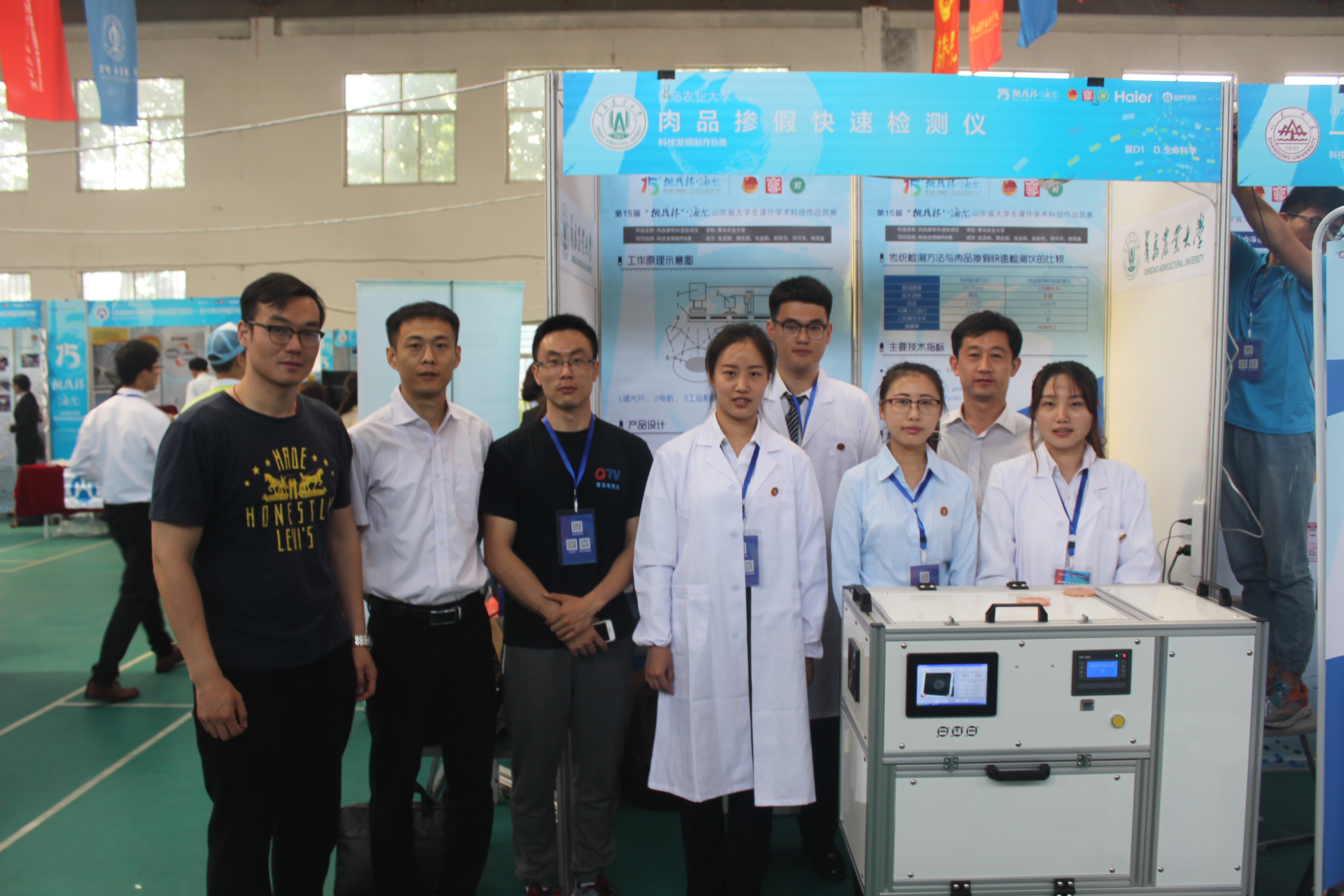 “肉品掺假快速检测仪”是利用工业相机滤光片采集图像的工作原理,将图像传输到智能显示模板,再通过程序把图像变成数据,通过所得数据与数据库数据进行比对,得出肉品检测结果。仪器解决了传统检测方法检测时间长、成本高、需专业人员操作等弊端,可快速检测肉糜类样品中混杂的掺假肉种类及掺杂比例。该项目申请了国家发明专利、外观专利、实用新型专利和软件著作权。