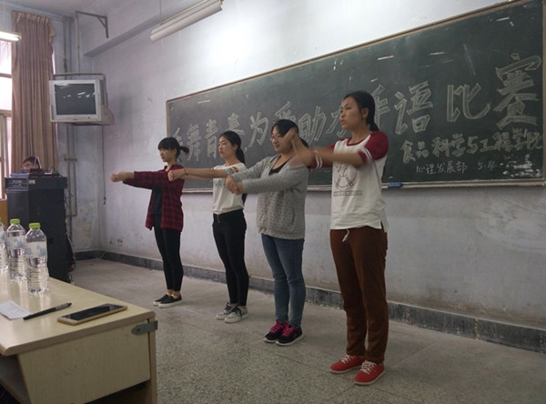 为了展现大学生青春和朝气,传播爱心,呼吁大家关心聋哑人,积极的加入到传递爱心、传递正能量的队伍中。5月14日,食品科学与工程学院女生发展中心心理发展部举办了“手舞青春,为爱助力”手语比赛。