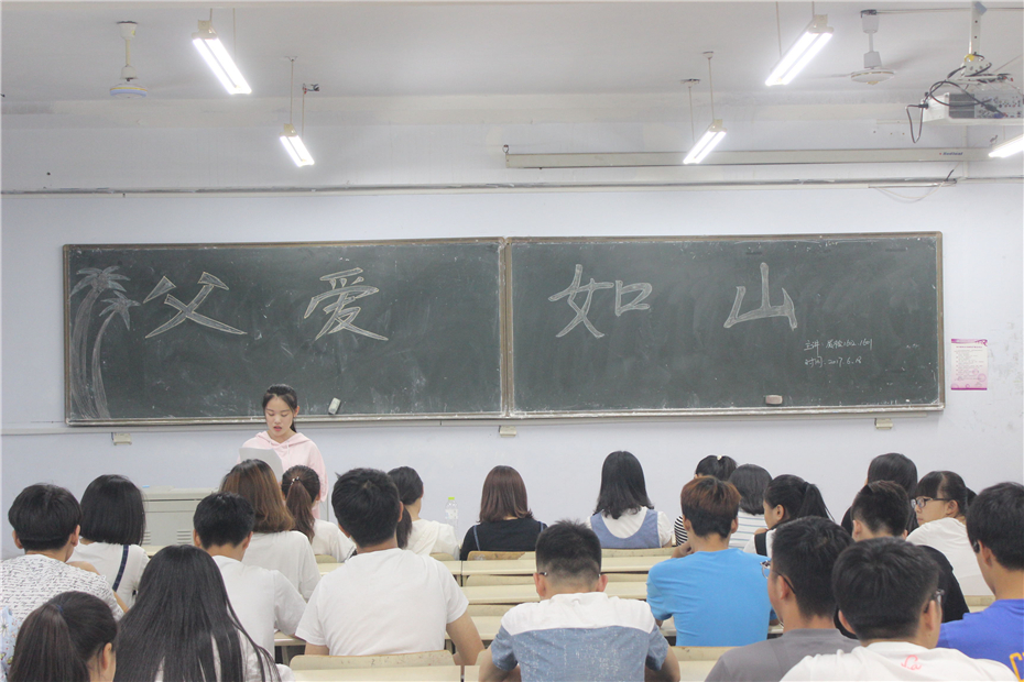 6月18日,食品科学与工程学院在教学区开展"父爱如山"主题政治学习,食品学院15、16级全体同学参加此次学习。