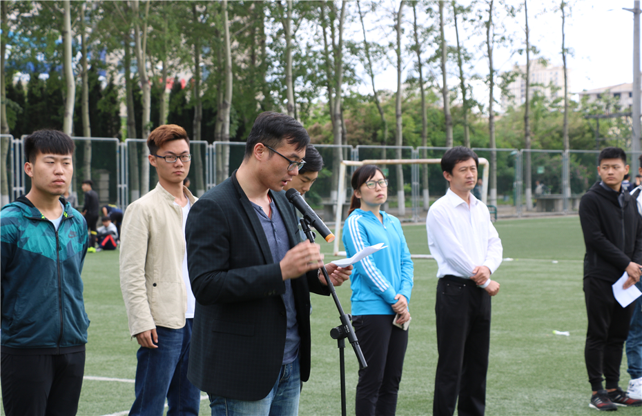 团委书记王海霖致比赛开幕辞,他提出本次比赛以强身健体为出发点,以团队合作为目标,旨在营造积极健康的校园体育文化,希望全体运动员们奋勇拼搏,赛出水平,赛出风采,赛出友谊。裁判员代表鲁校冉,运动员代表于浩东依次宣誓,表达了公平竞赛、公正判罚的决心。随后,党委副书记宋伟在欢呼声中为比赛开球,宣布“食品杯”足球赛正式拉开帷幕。在接下来进行的两场比赛中,2016级粮工队2:1击败2016级生工葡萄酒联队,2015级生工粮工联队1:0拿下2016级食科队。