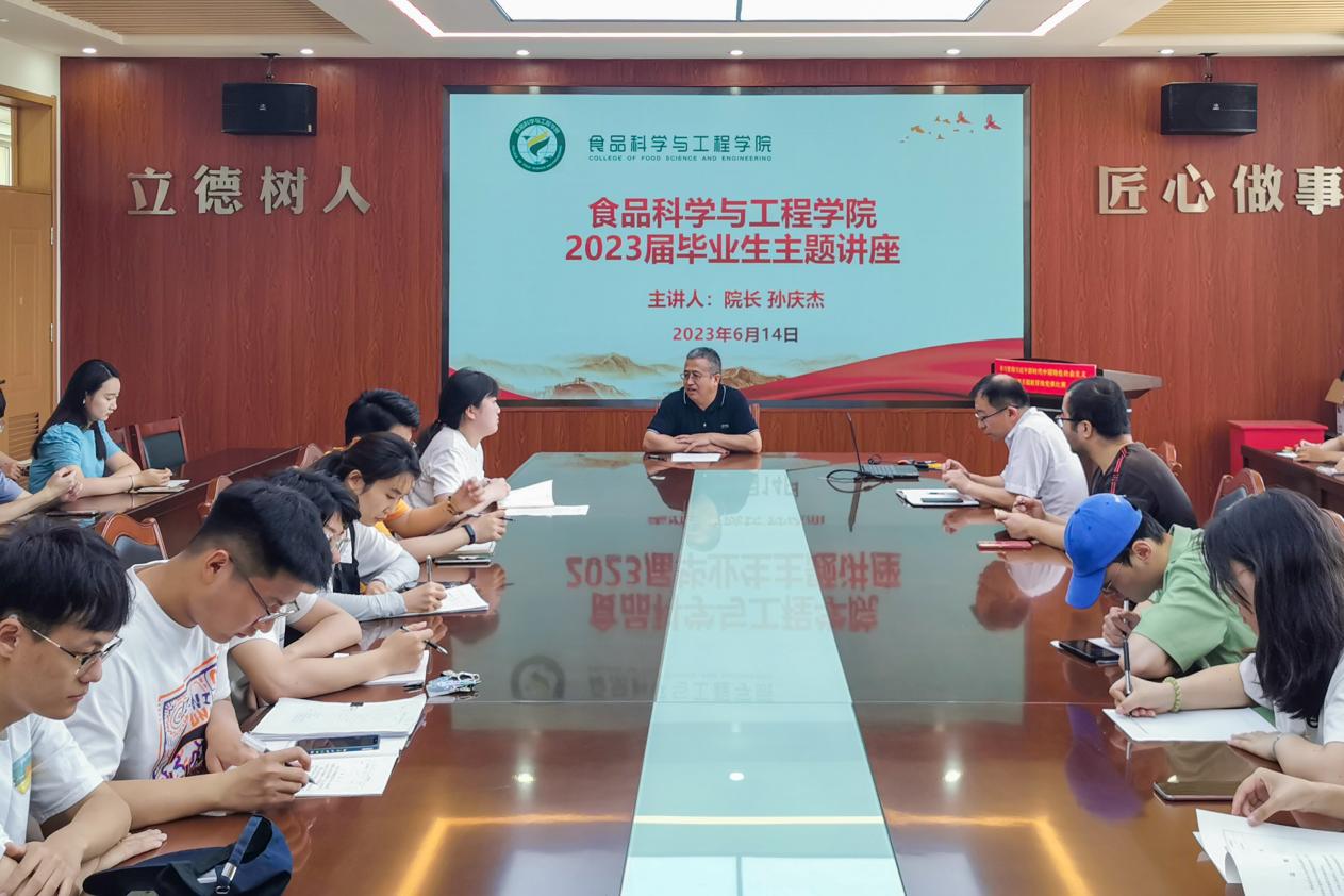 6月13日,在2023届毕业生离校之际,食品科学与工程学院院长孙庆杰为毕业生讲授离校前的“最后一堂课”,勉励广大毕业生胸怀天下、博采众长,将平凡做到极致,用实干成就梦想。学院党委副书记、副院长刘晓华,辅导员李振荣及毕业生代表参加报告会。