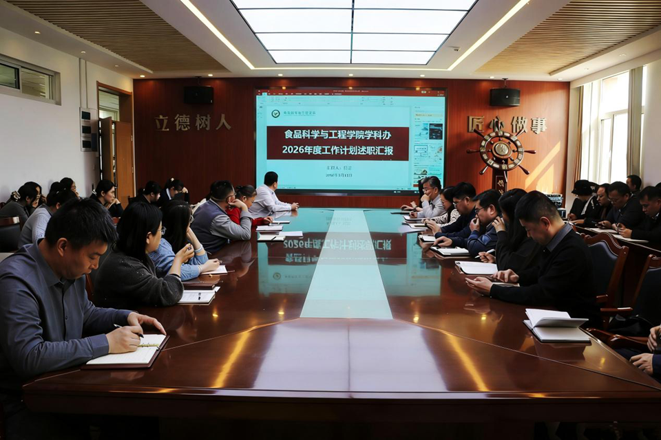3月12日,食品科学与工程学院召开2026年工作计划汇报会。学院党政领导班子、全体教职工参加,学院党委书记车广杰主持会议。