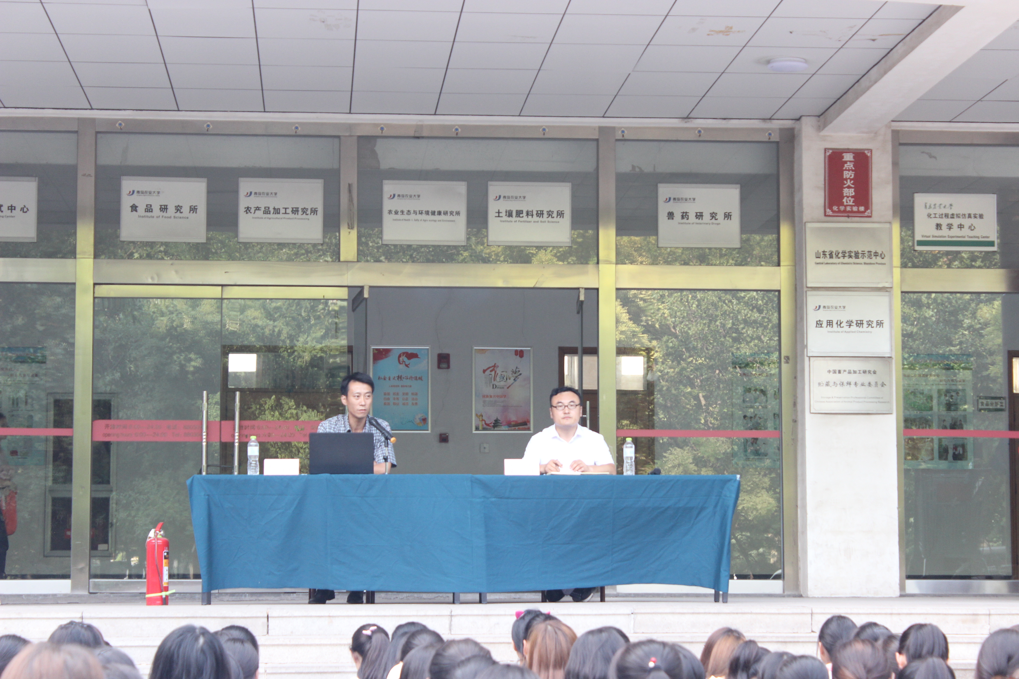 为加强2017级新生的安全意识,9月15日,食品科学与工程学院在化学楼前举办新生安全教育报告会,校保卫处訾可心老师为全体新生讲解校园安全知识。报告会由学院团委书记李永青主持。